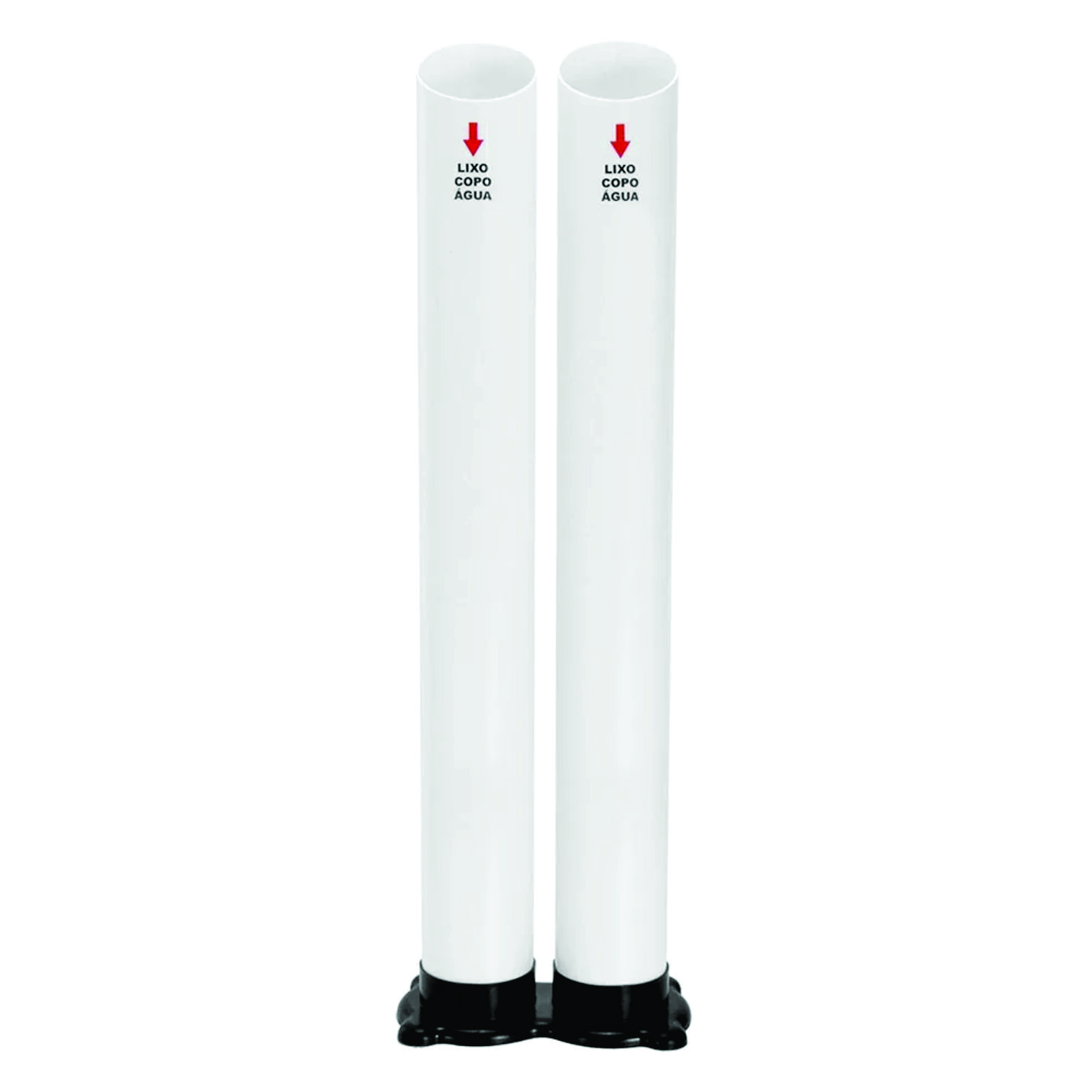 Com design vertical e dois tubos extrusados que conduzem os copos diretamente à base, o modelo ajuda a reduzir o volume de resíduos descartados e evita o acúmulo de copos em locais inadequados.