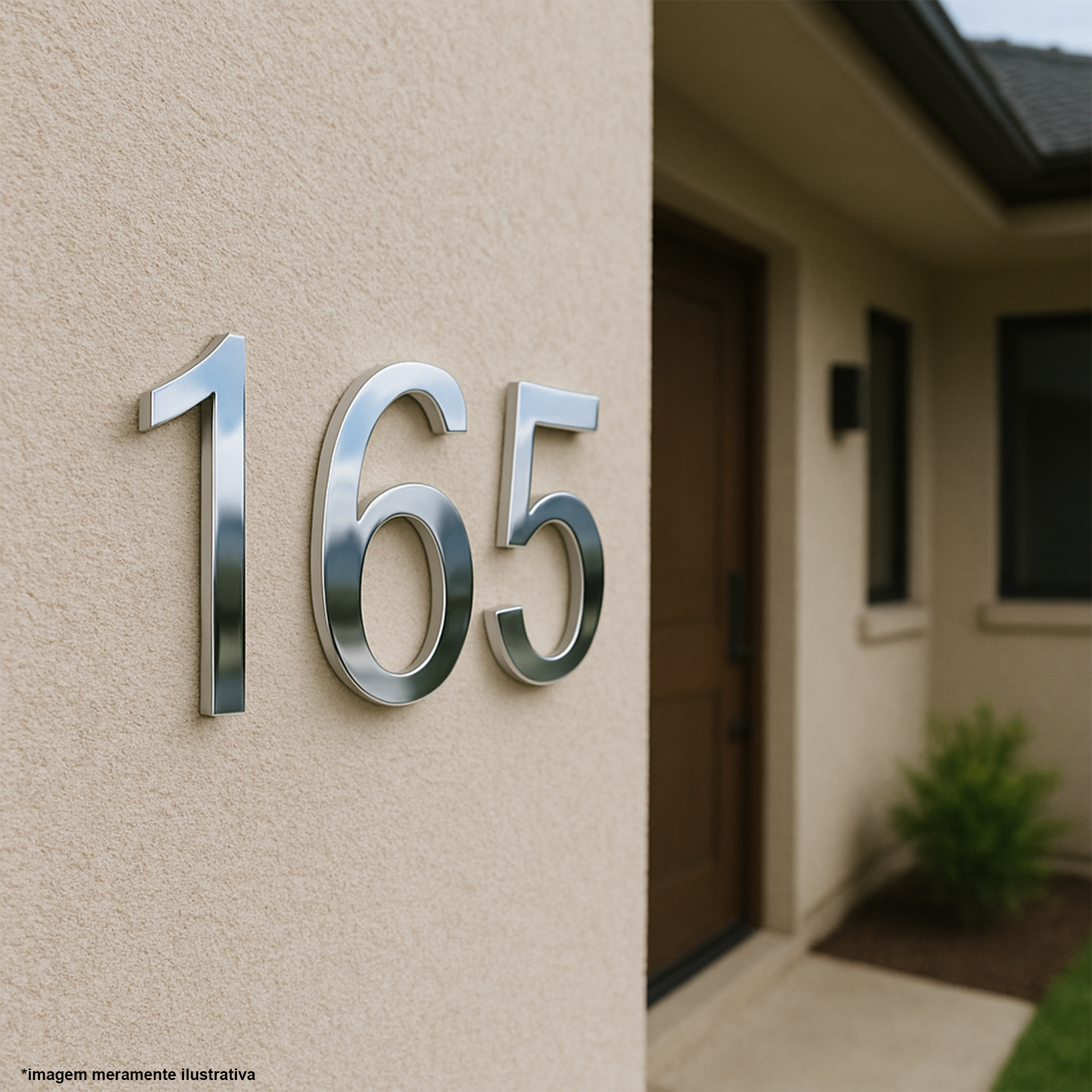 Perfeito para fachadas modernas, muros e portões, o número residencial em ACM prata espelhado 3mm tem acabamento metálico reflexivo que destaca seu endereço com elegância e excelente visibilidade — até mesmo de longe ou à noite.