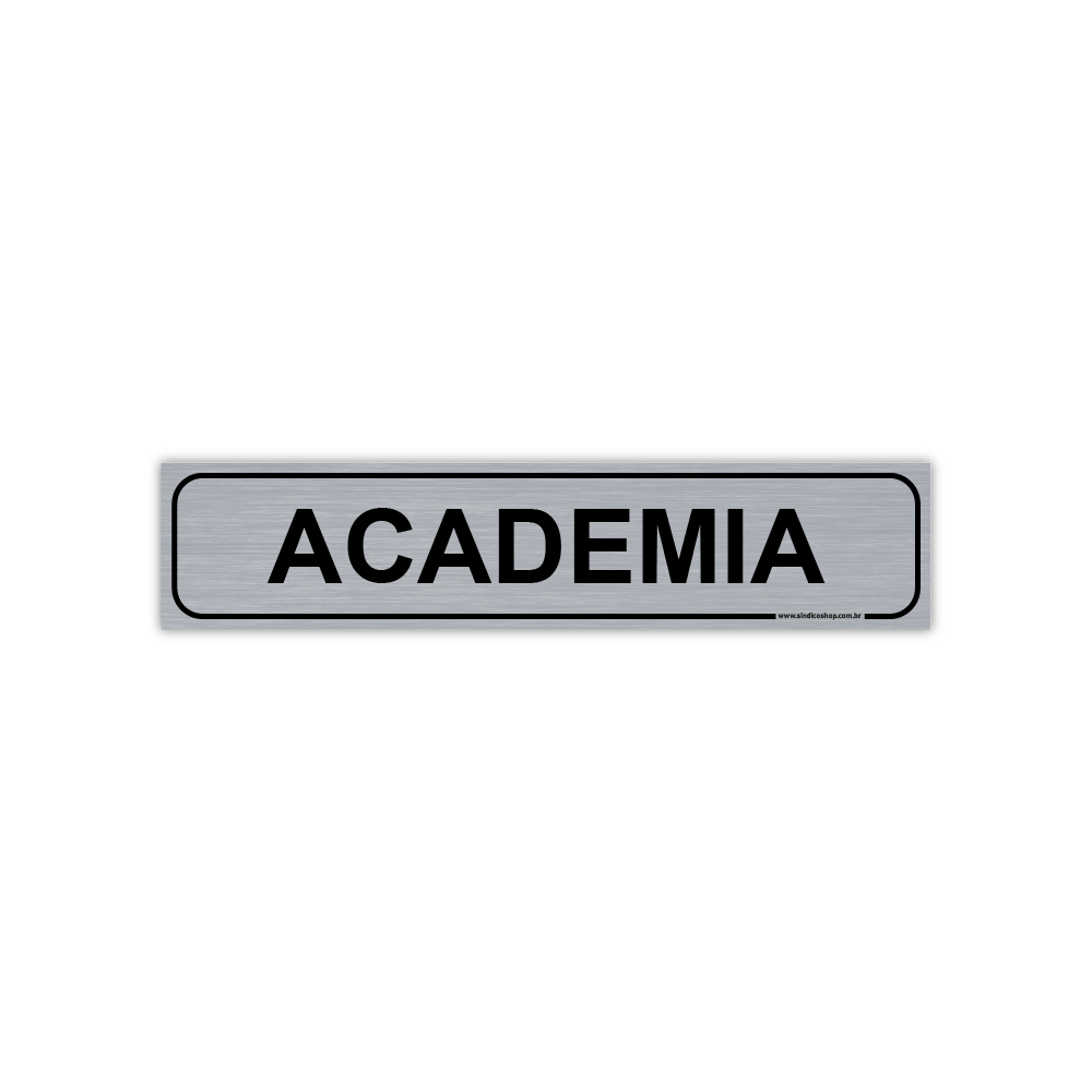 Sinalize sua área fitness com elegância e praticidade. A placa “Academia” com acabamento que imita aço inox escovado oferece um visual moderno e sofisticado, ideal para condomínios, hotéis, clubes e espaços corporativos com estrutura de ginástica ou musculação.