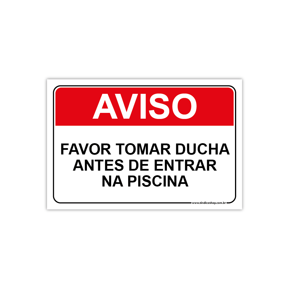 A Placa “Favor tomar banho antes de entrar na piscina” ajuda a manter a limpeza e a qualidade da água, além de reforçar boas práticas entre os frequentadores. Ideal para ambientes com piscina compartilhada, como condomínios, hotéis, clubes e academias.