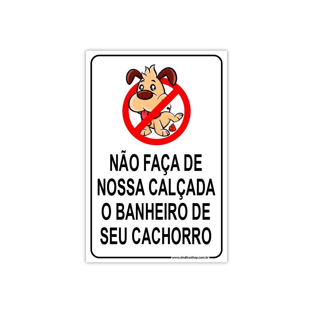 A placa “Não faça de nossa calçada o banheiro de seu cachorro” é ideal para transmitir uma mensagem clara e educada a pedestres e tutores de animais. Fabricada em material leve e resistente, é perfeita para uso externo e fixação em muros, portões, cercas e fachadas de residências ou comércios.
