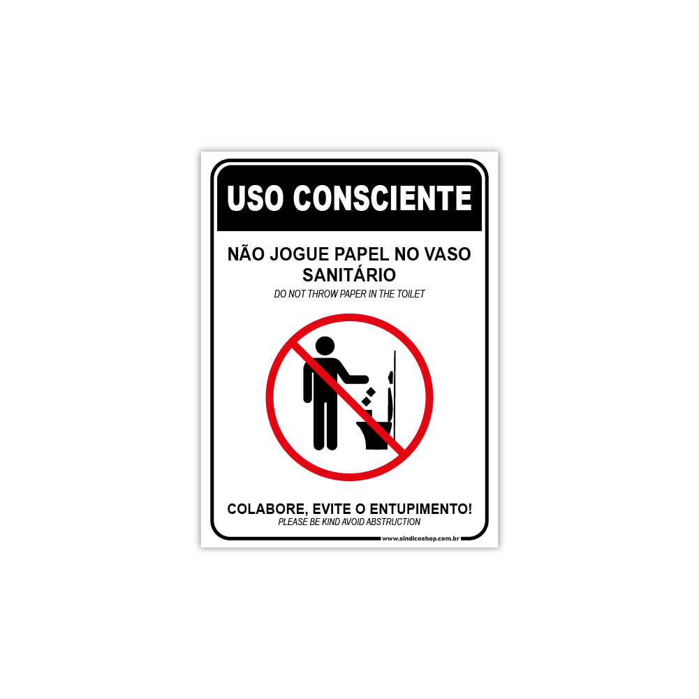 Esta placa é essencial para ambientes com grande circulação de pessoas, como banheiros de empresas, comércios, restaurantes, escolas ou espaços públicos. Promove o uso consciente e ajuda a evitar problemas com entupimentos, promovendo economia e conservação das instalações.