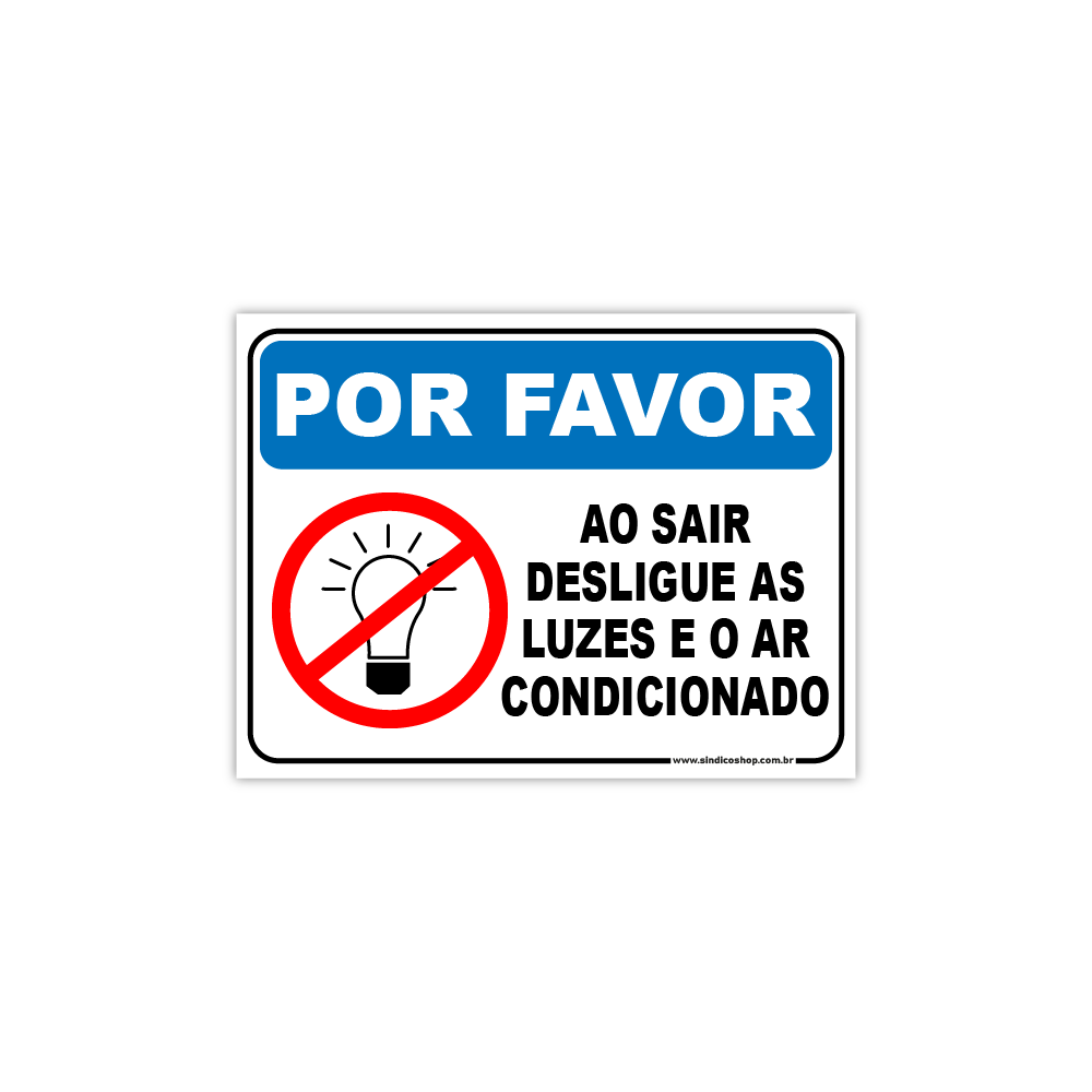 Promova atitudes conscientes e sustentáveis dentro da sua empresa ou condomínio! A placa “Ao Sair Desligue as Luzes e o Ar-condicionado” é uma solução simples, funcional e eficaz para reforçar o uso racional de energia.