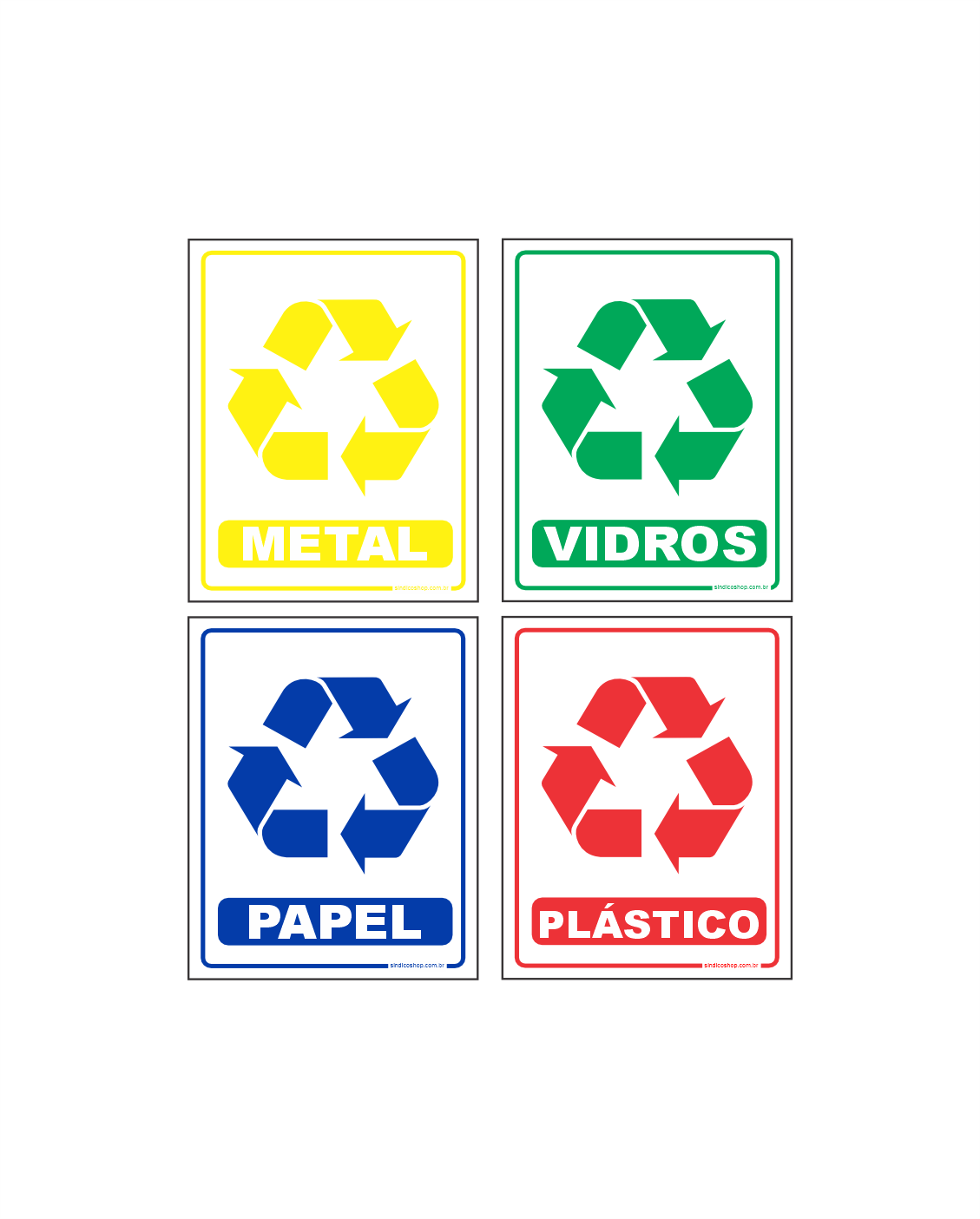 📌 Quantidade: 4 adesivos (1 para cada tipo de resíduo)