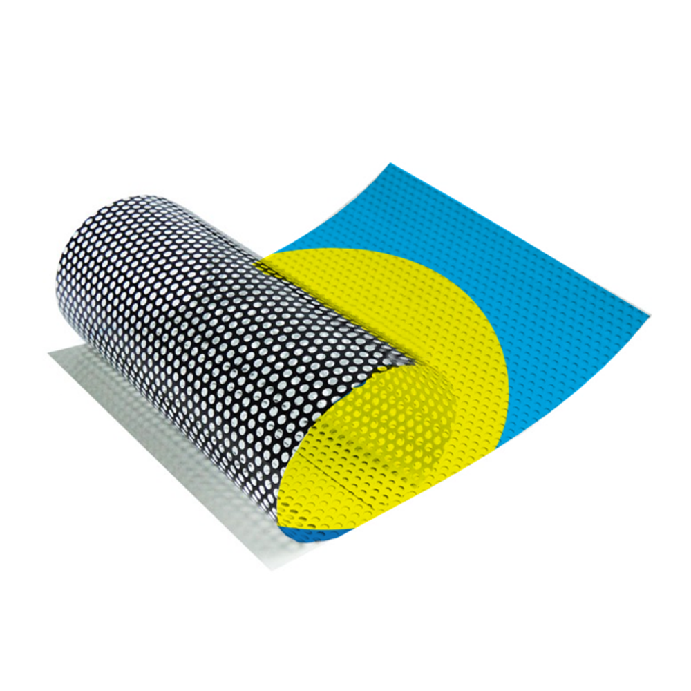 Com a possibilidade de imprimir qualquer arte, o adesivo perfurado personalizado é ideal para divulgação de marcas, promoções, campanhas publicitárias e decoração.